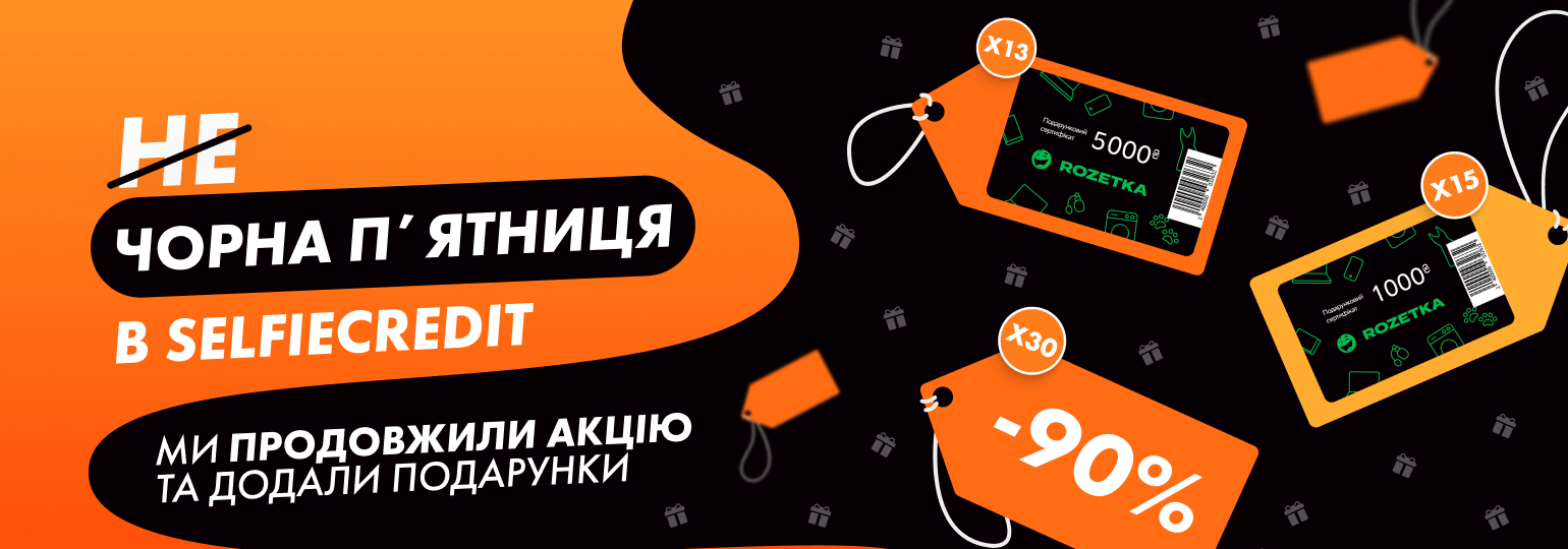 У вас є чудова нагода виграти новенький iPhone 16 PRO! Для цього потрібно взяти кредит на суму від 1 000 грн. Також Selfie Credit підготував для вас інші призи. Тож Гав не хапай – подарунки від Selfie вигравай!